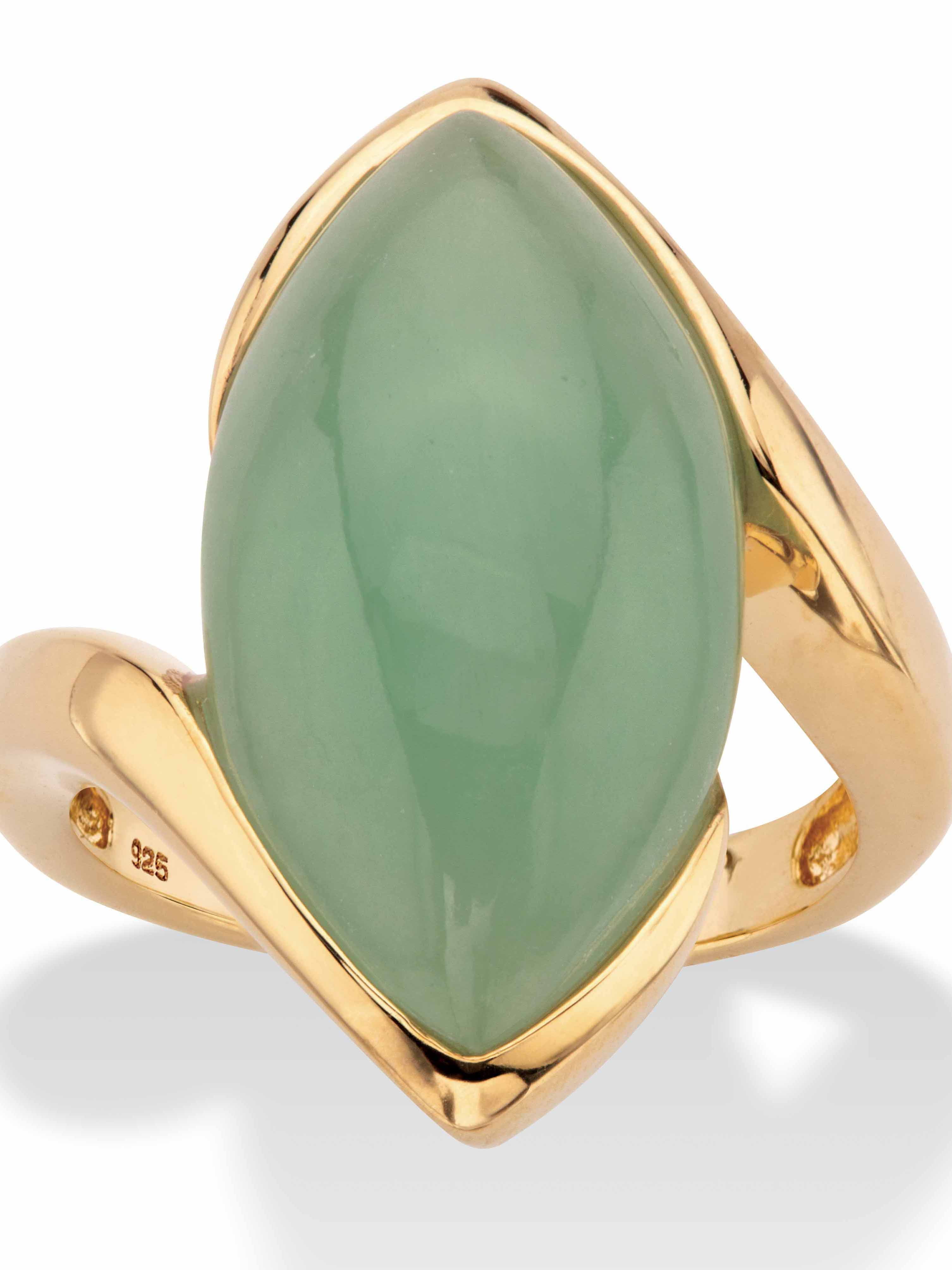 Marquise Cut Genuine Green Jade Cabochon Bypass Ring In 14k Gold Plated Sterling Silver Walmart Com