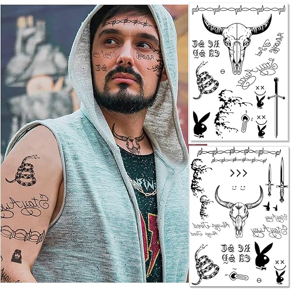 Amazon Com 10 Sheets Post Malone Face Tattoo Set Included Post Malone Tattoos And Death Eaters Tattoos Halloween Post Malone Tattoos Temporary Accessories And Parties Beauty Personal Care