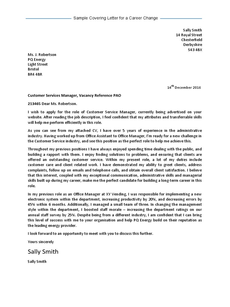 Career Change Cover Letter 39 Pdf Communication Business
